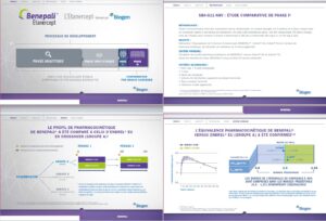 Parmi nos réalisations, nous avons mené des campagnes institutionnelles, des annonces presse, des affiches, des invitations à des événements et des supports pour stands lors de congrès et symposiums. Nous avons également collaboré sur des campagnes médias et hors média, notamment pour les produits BIOGEN BENEPALI et FLIXABI, en produisant des livrets RCP, des guides pratiques, des dossiers PGR et des bandeaux publicitaires pour des campagnes digitales.